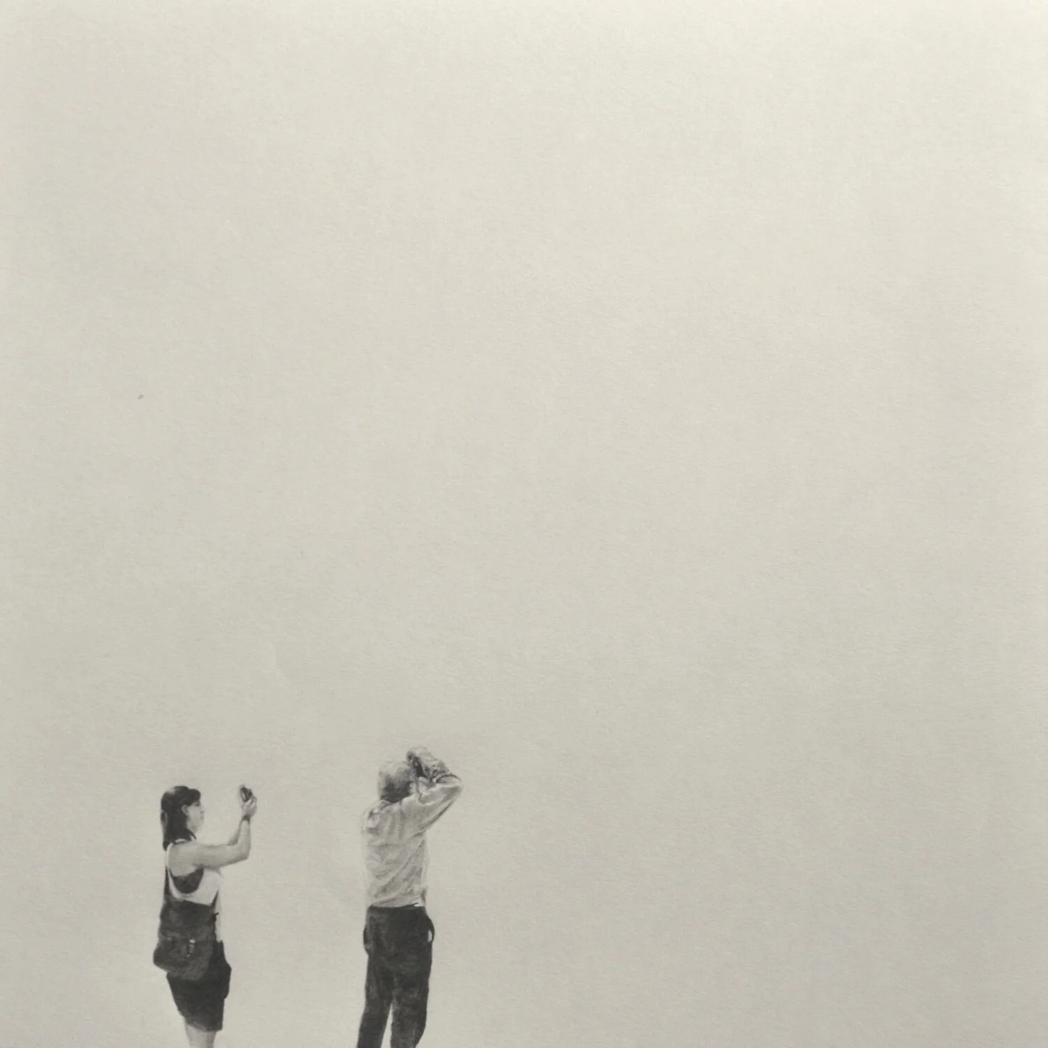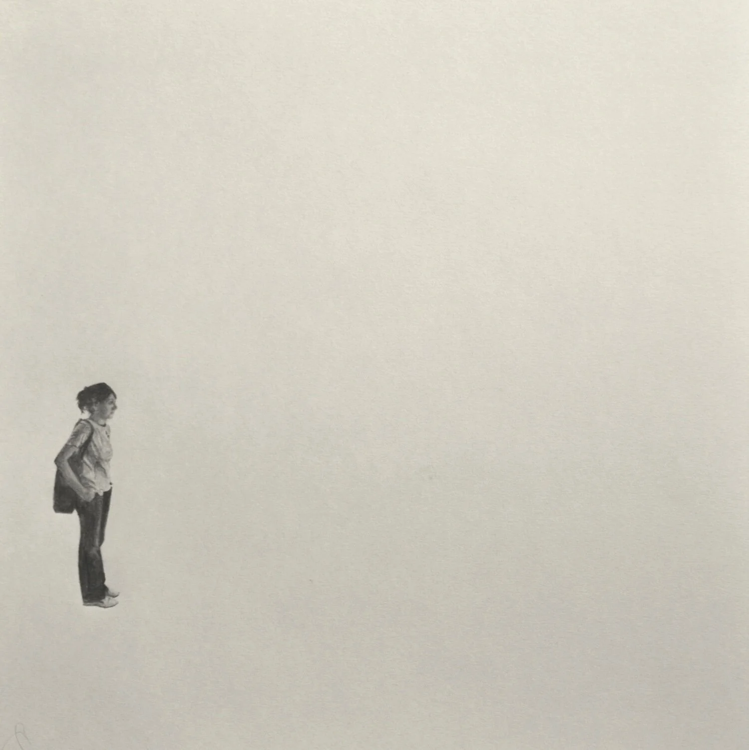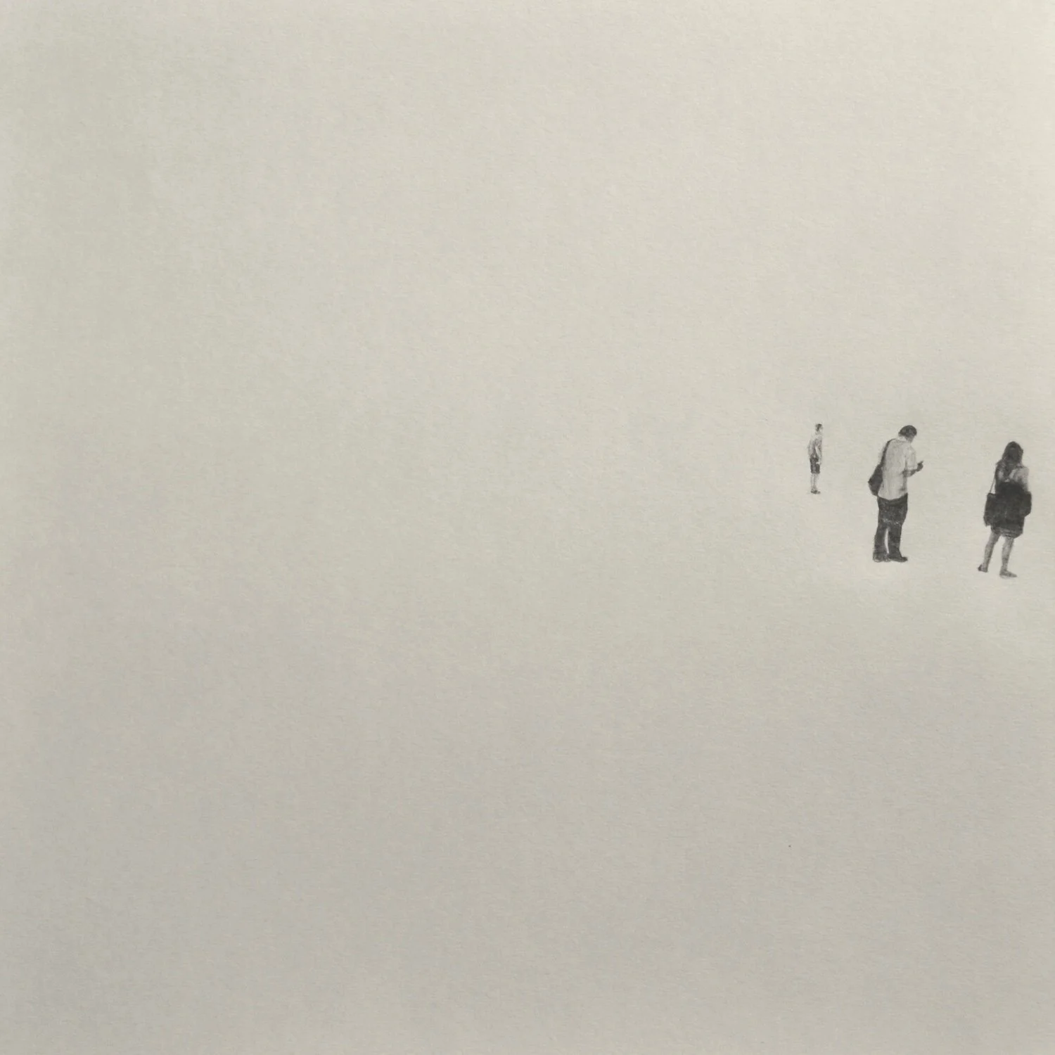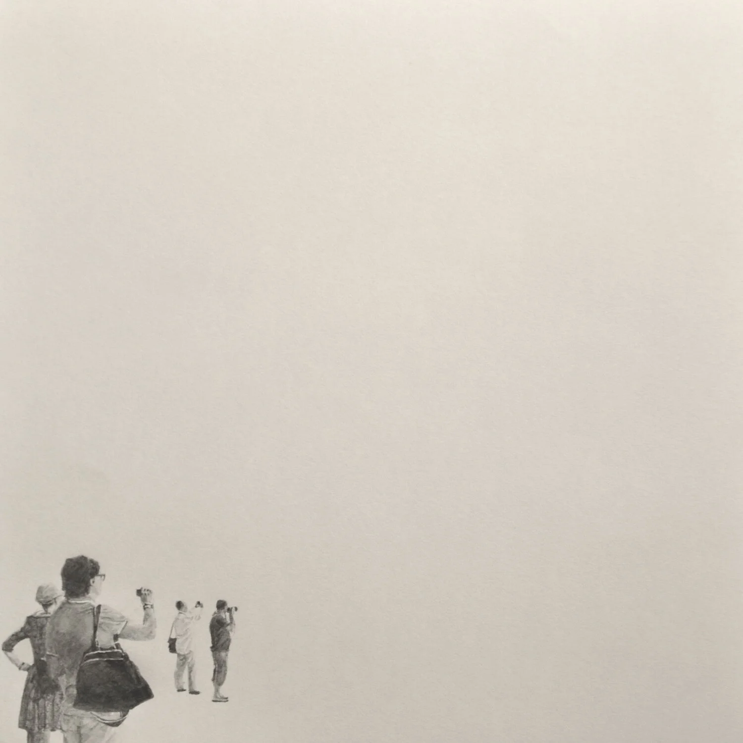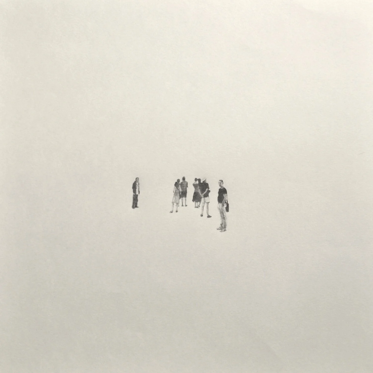 Only viewers are depicted within a blank page space – an approach motivated by a recurring interest in the spatial relationship between marked and unmarked areas in painting and drawing. In making this series I was curious about the extent to which the unmarked pictorial space inherits a scale, shape or ambience from the drawn elements.
