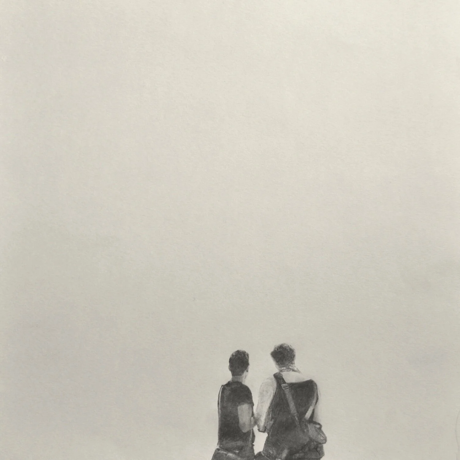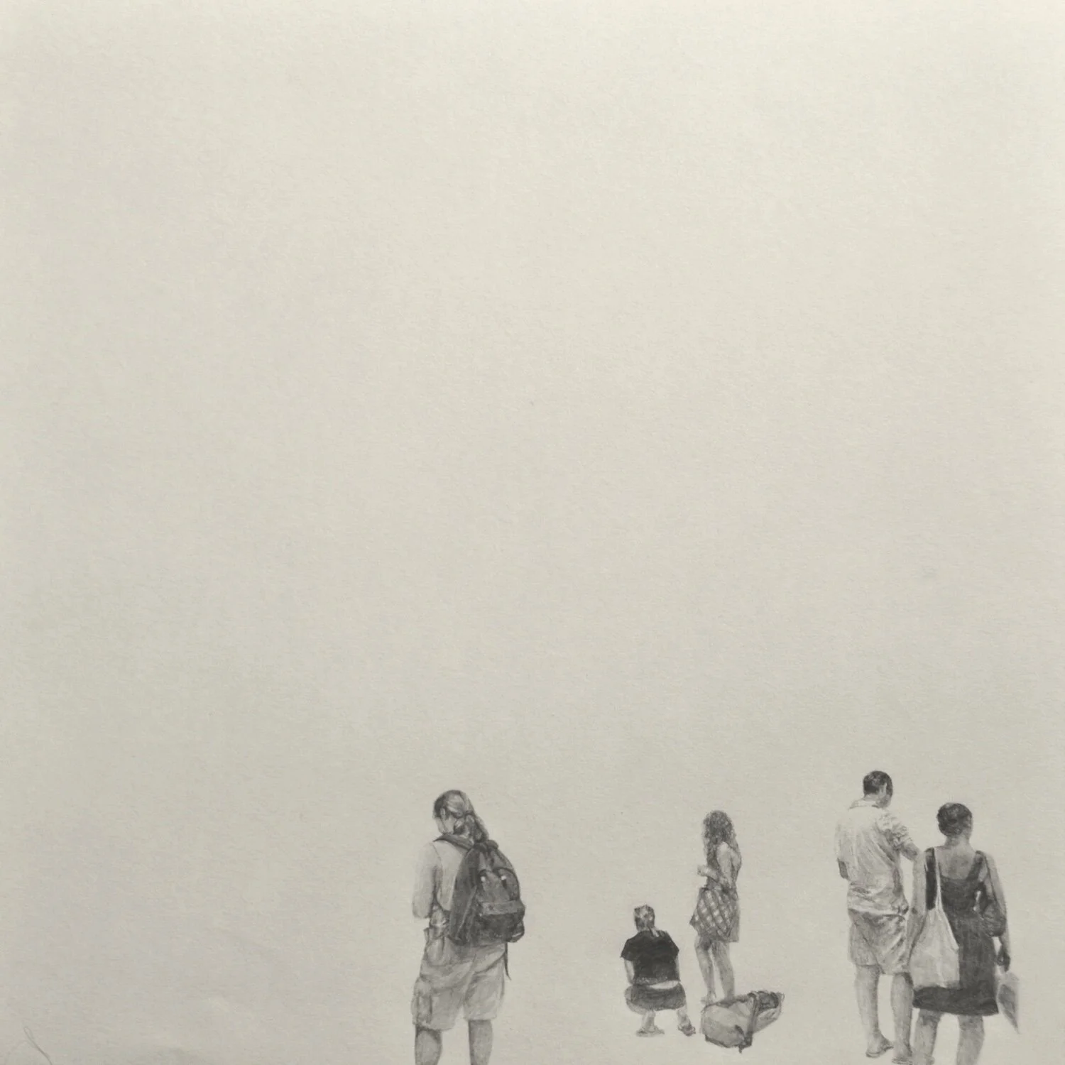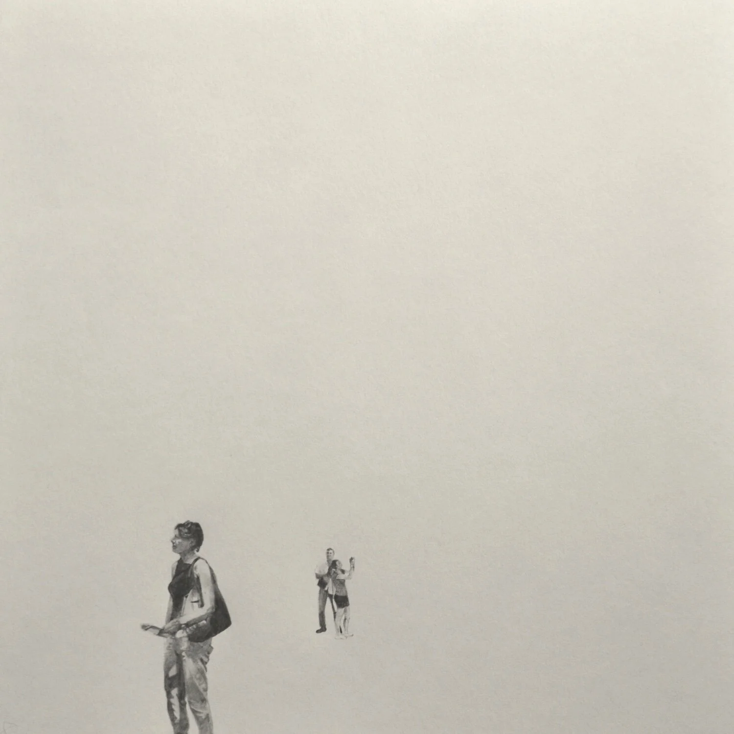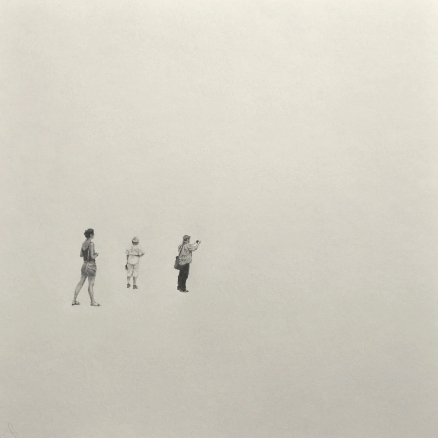 Only viewers are depicted within a blank page space – an approach motivated by a recurring interest in the spatial relationship between marked and unmarked areas in painting and drawing. In making this series I was curious about the extent to which the unmarked pictorial space inherits a scale, shape or ambience from the drawn elements.