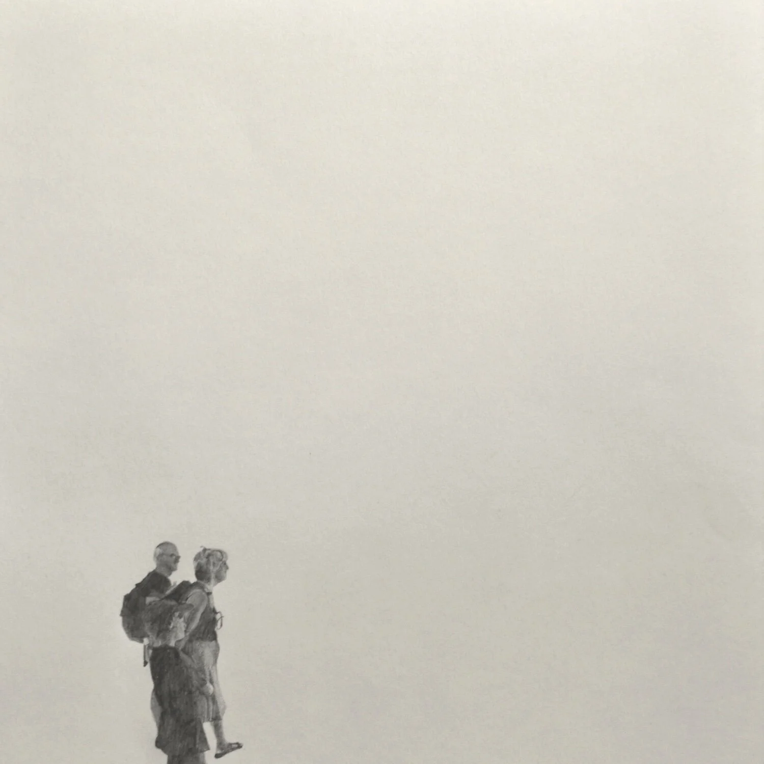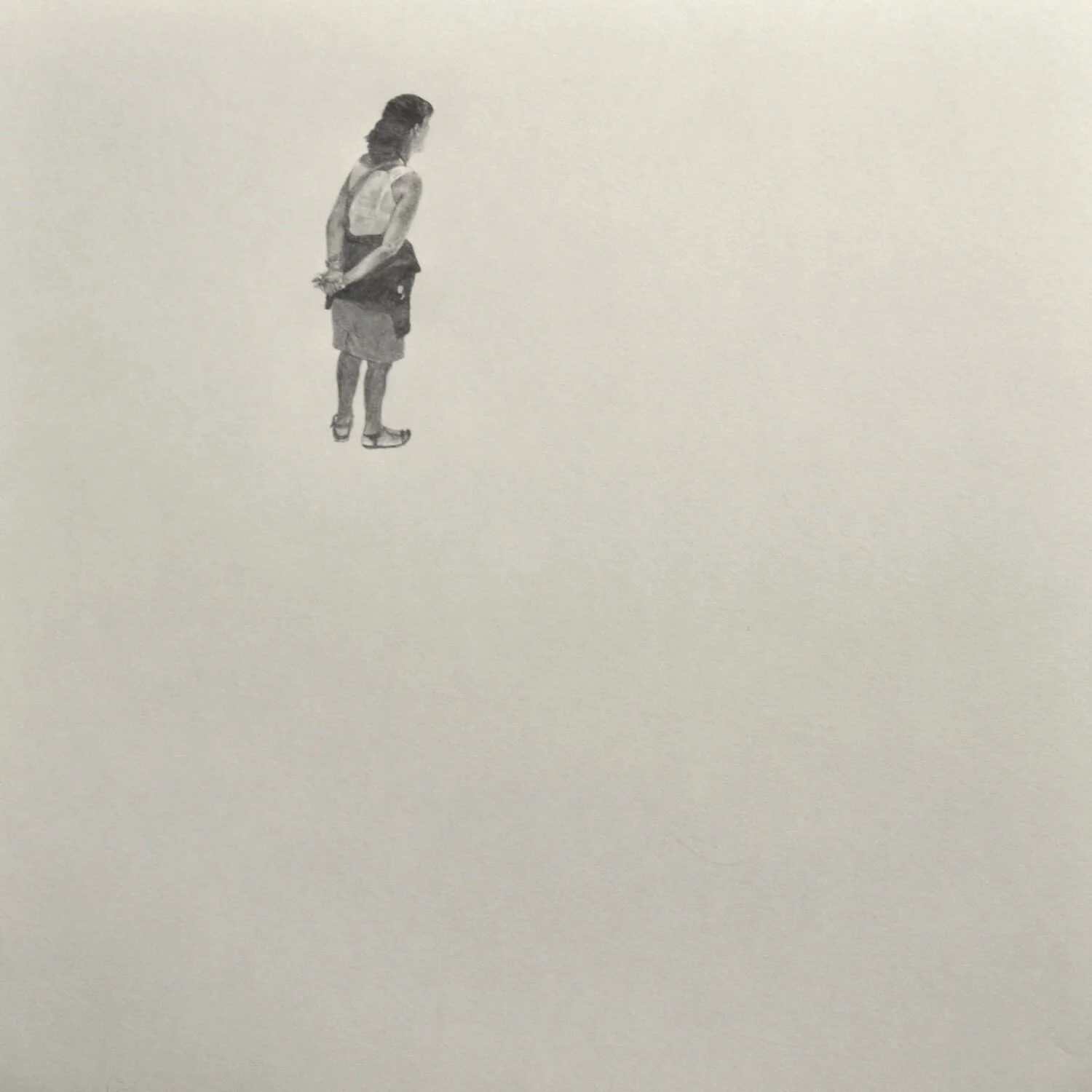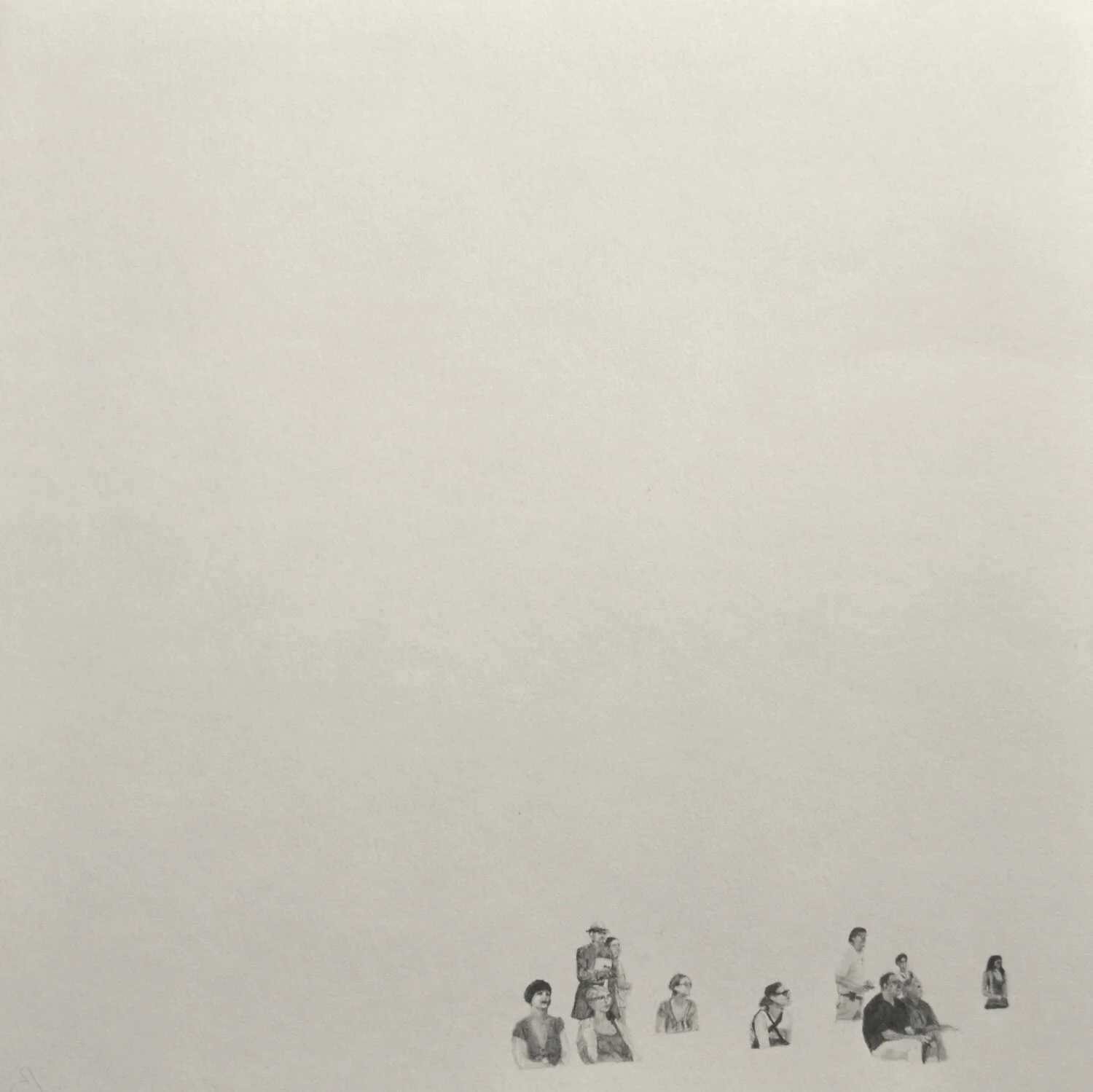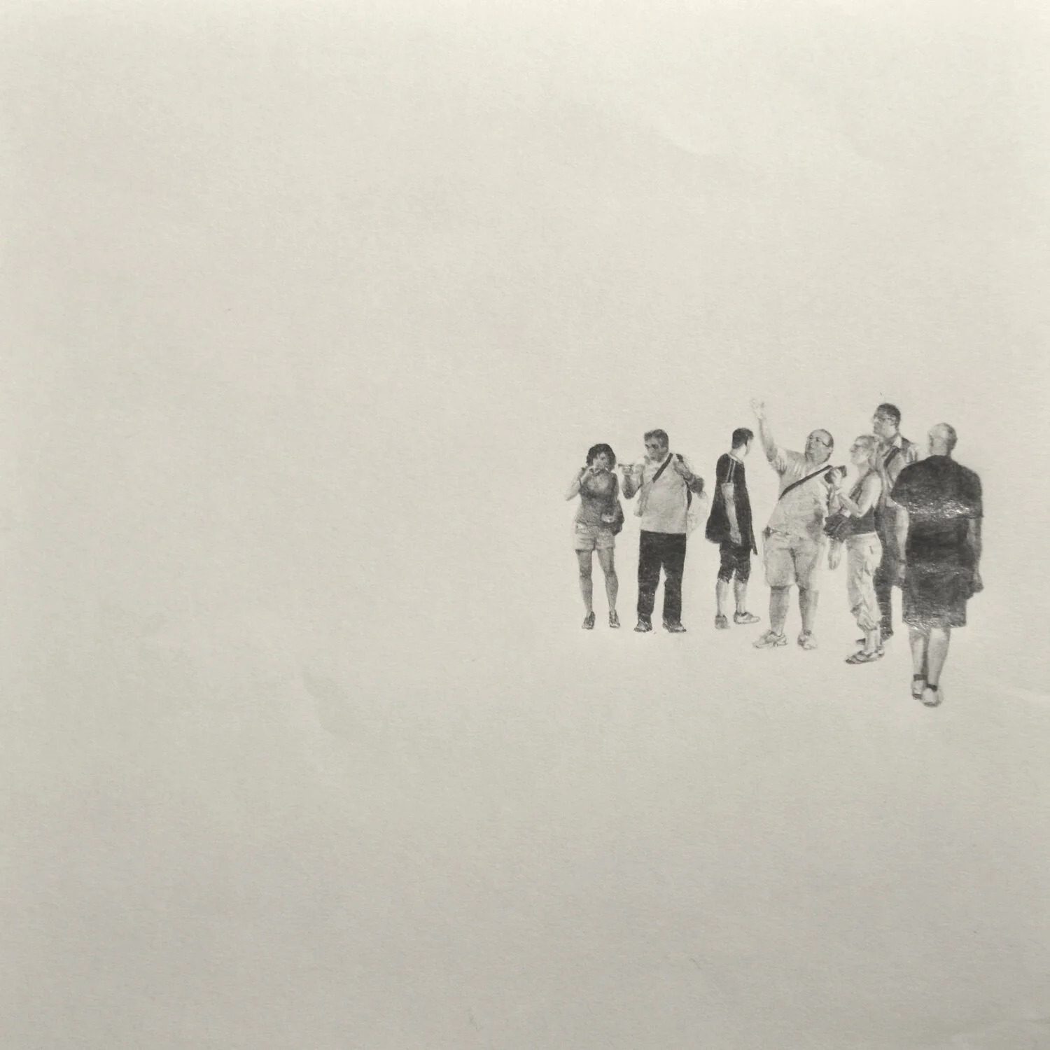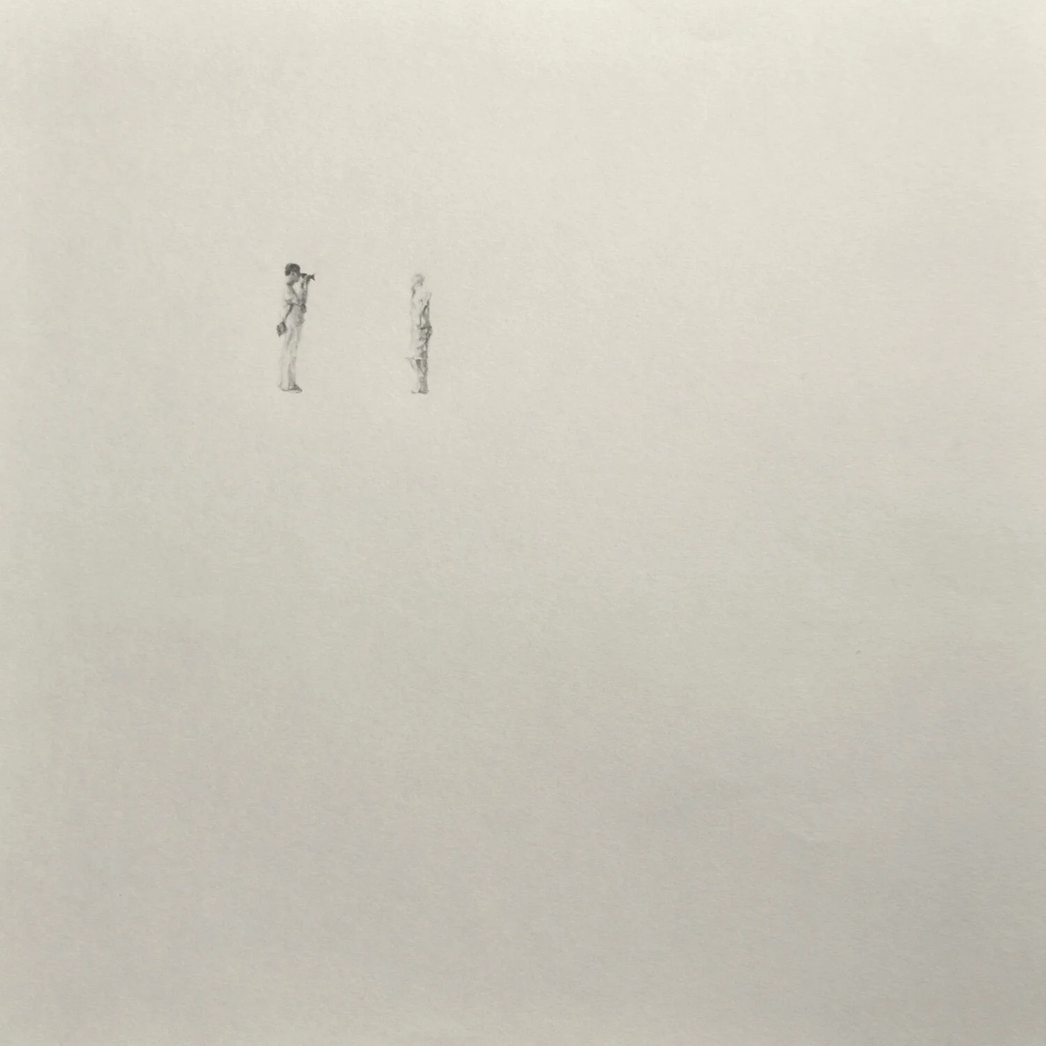 Only viewers are depicted within a blank page space – an approach motivated by a recurring interest in the spatial relationship between marked and unmarked areas in painting and drawing. In making this series I was curious about the extent to which the unmarked pictorial space inherits a scale, shape or ambience from the drawn elements.