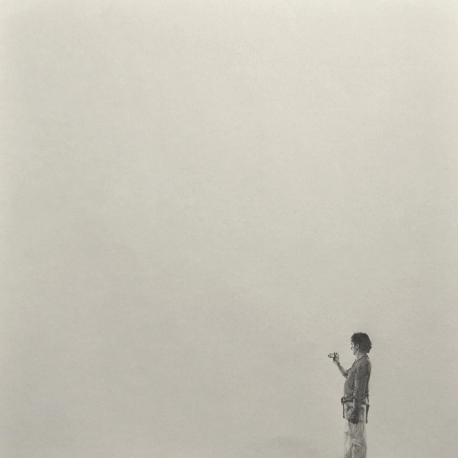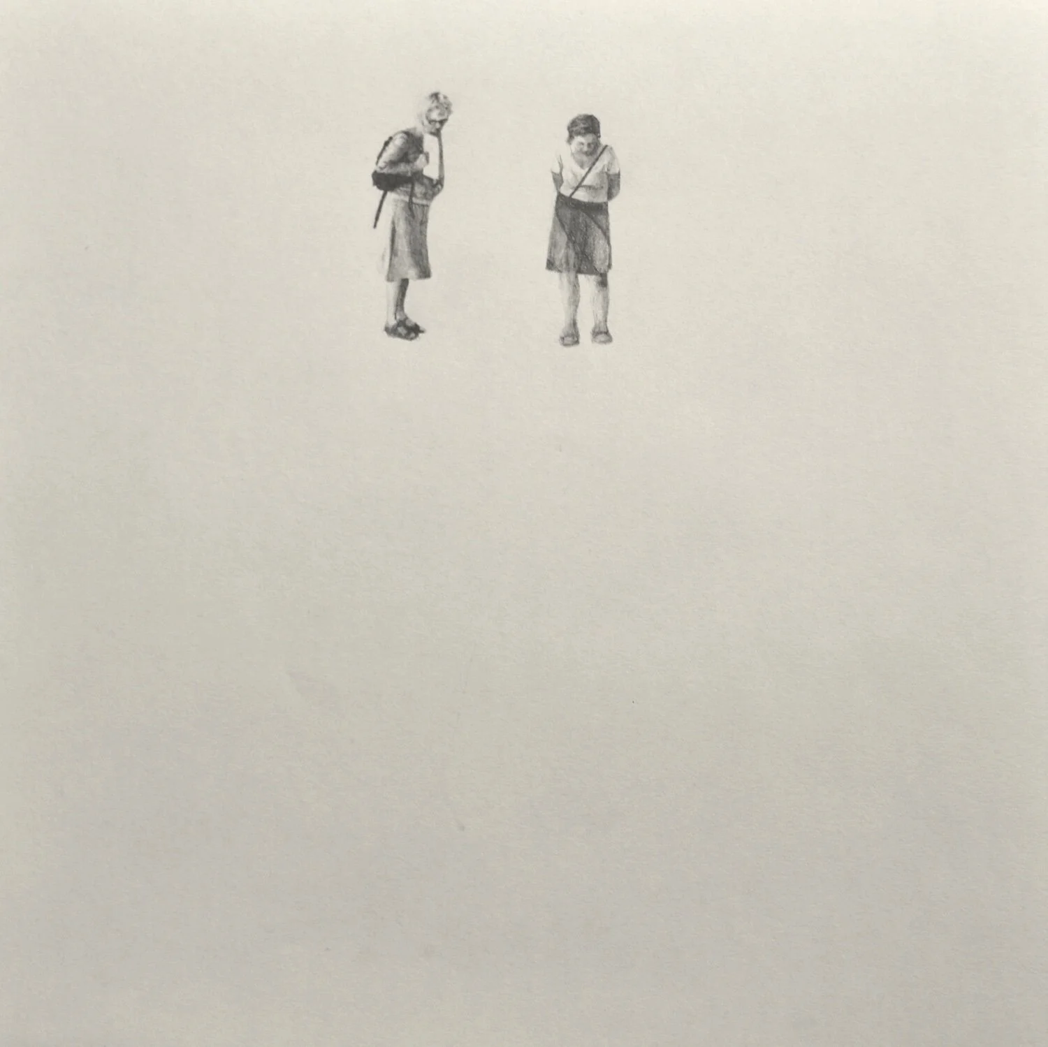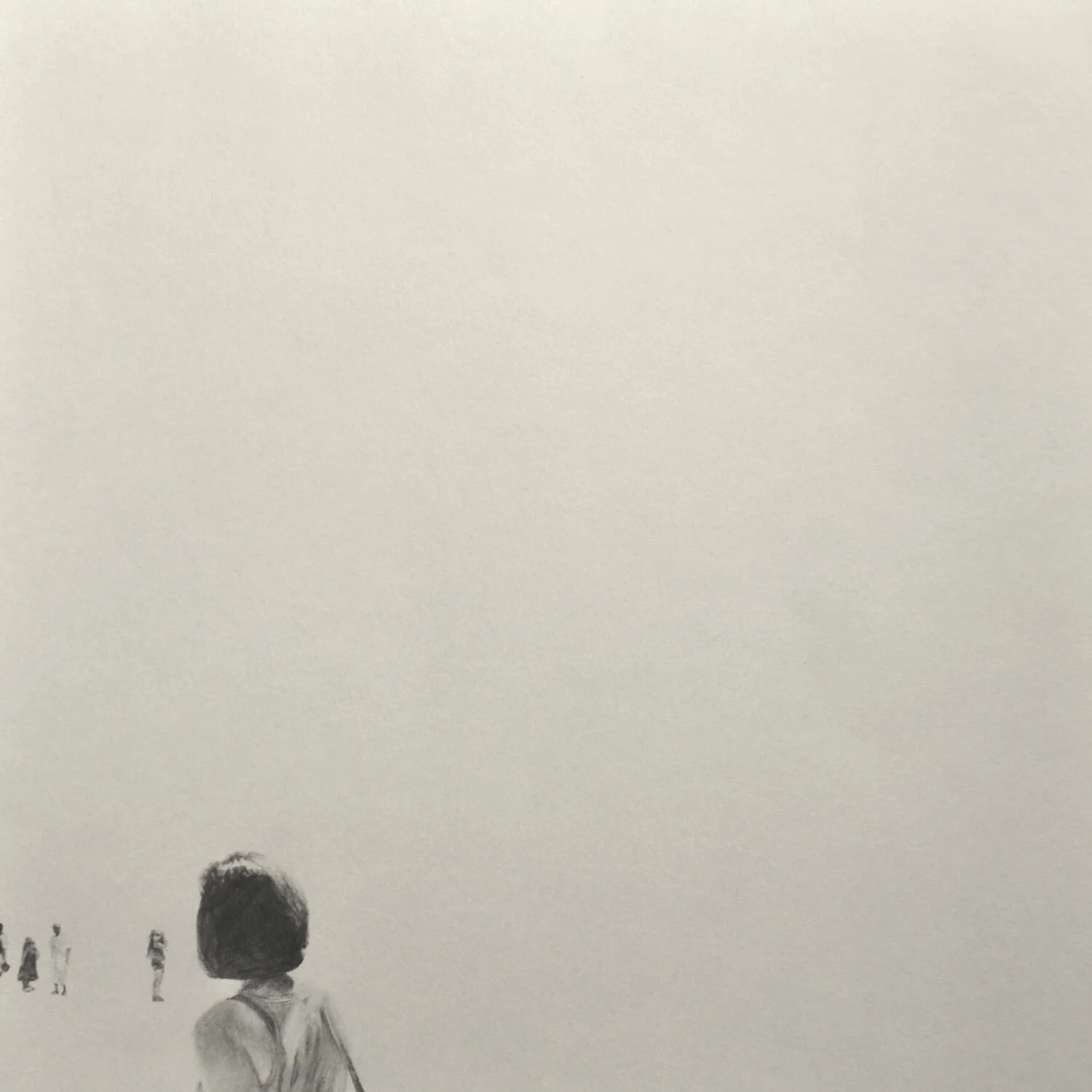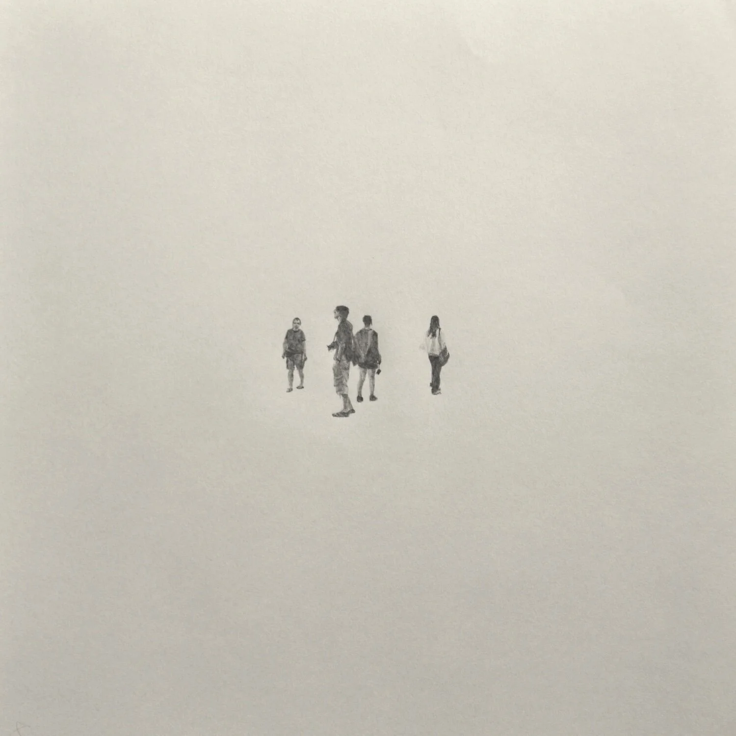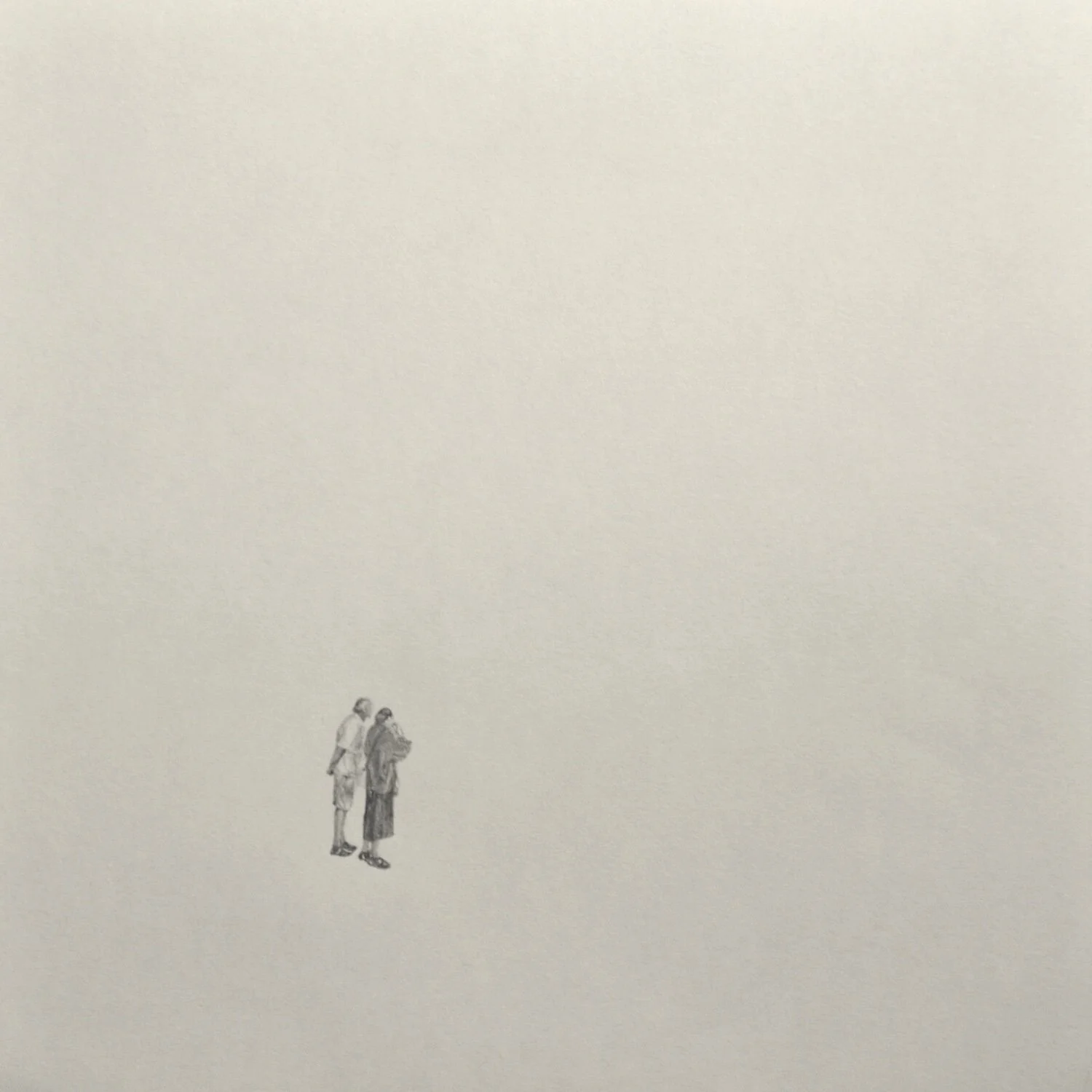 Only viewers are depicted within a blank page space – an approach motivated by a recurring interest in the spatial relationship between marked and unmarked areas in painting and drawing. In making this series I was curious about the extent to which the unmarked pictorial space inherits a scale, shape or ambience from the drawn elements.